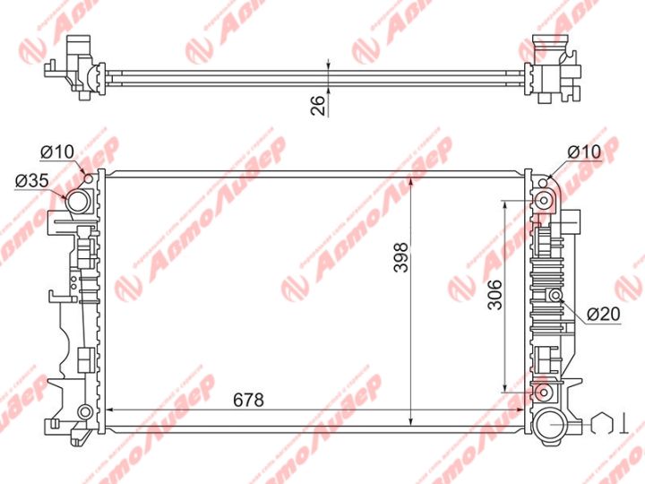 Радиатор охлаждения /AUTOLEADER для Mercedes Sprinter VW Crafter 2006- 2.2 /без крышки; MB-001-1216; MB0011216 9065000402